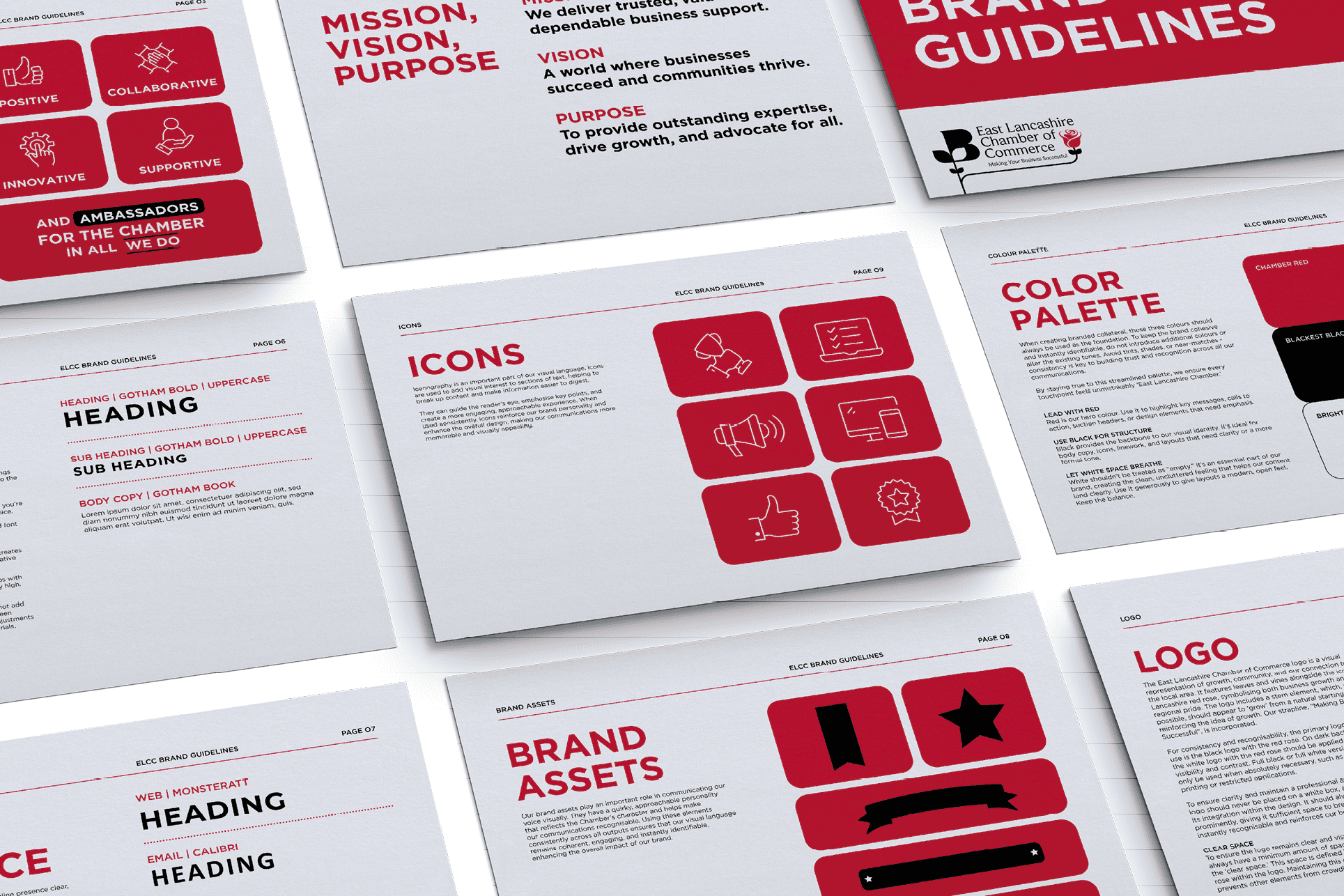 Challenge: East Lancashire Chamber of Commerce’s branding needed a refresh, revamping how it communicated its offerings to both members and visitors from first impressions as a visor to members and clients The reception space needed to do more than welcome guests – it had to act as a living brand asset, conveying the Chamber’s services and each department’s impact with clarity and personality. The designs also had to be evergreen, avoiding quickly outdated statistics, whilst remaining engaging and relevant over time. Solution: I began with an infographic-led concept and developed it into a full suite of wall graphics, which would then be printed onto large vinyl sheets for fitting. Every detail was carefully designed, refined, and every space measured to ensure variety and balance across the text-focused layouts. The approach became the foundation for a new Chamber brand style, applied consistently across all communications. Outcome: The Chamber signage project redefined how the organisation presents itself internally and externally. The Chamber’s walls now function as both an information hub and a communications tool, engaging staff and educating visitors and local businesses. Beyond the physical space, the project established a cohesive and distinctive brand style that continues to influence the Chamber’s communications today.